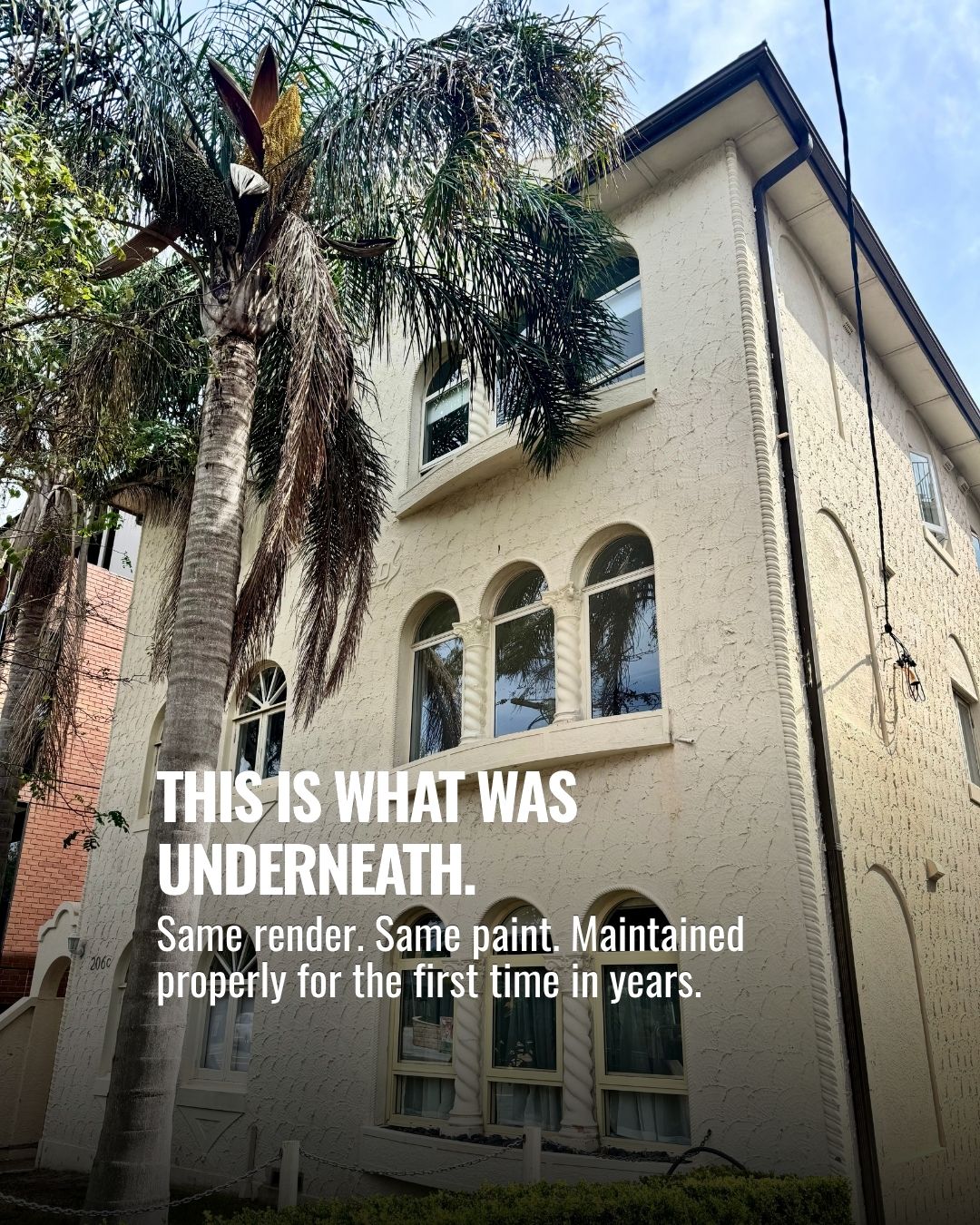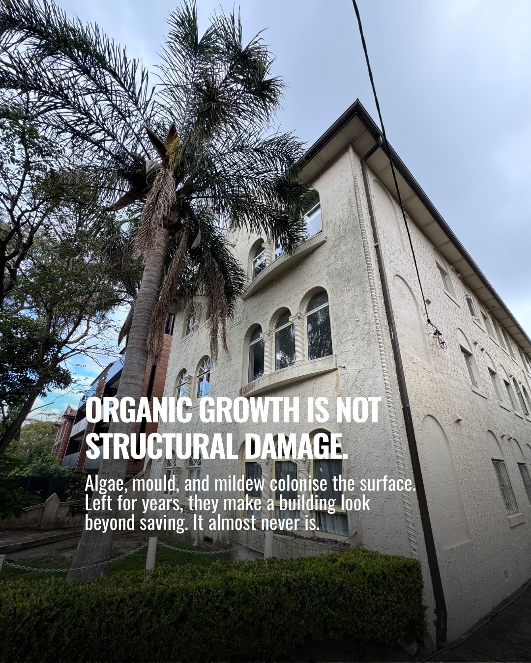 What they had wasn't a paint problem. It was years of algae, mould and biological growth on a surface that had never been properly cleaned. The paint underneath was fine.